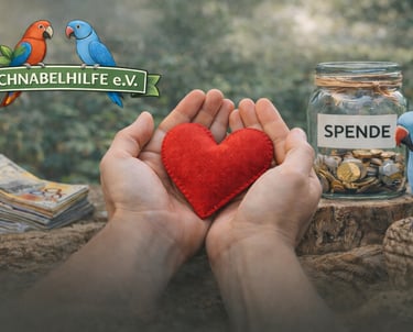 Wir unterstützen Schnabelhilfe e.V., weil uns Tierwohl und verantwortungsvolle Papageienhaltung am Herzen liegen. Ein Teil unserer Erlöse fließt in die Arbeit des Vereins – für Hilfe in Notfällen, Versorgung und Vermittlung von Papageien und anderen Vögeln. So wird jeder Einkauf bei Schnabelbedarf auch ein kleines Stück Unterstützung für den Tierschutz